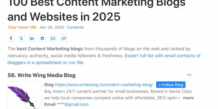 The Write Wing Media Blog has soared into the ranks of the Top 100 Content Marketing Blogs on the web. We hold the impressive position of Number 75, elevating our standing even further.